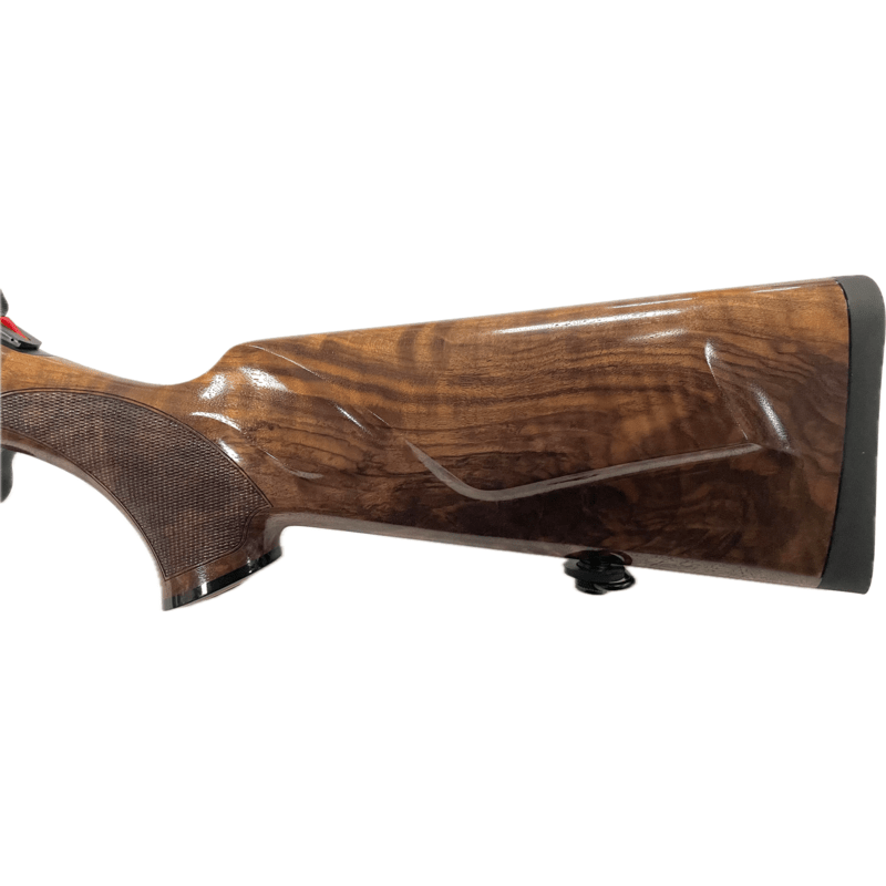 Das Modell umfasst mehrere Schaftoptionen, von denen dies der Holzgrad 5 Nussbaum ist.