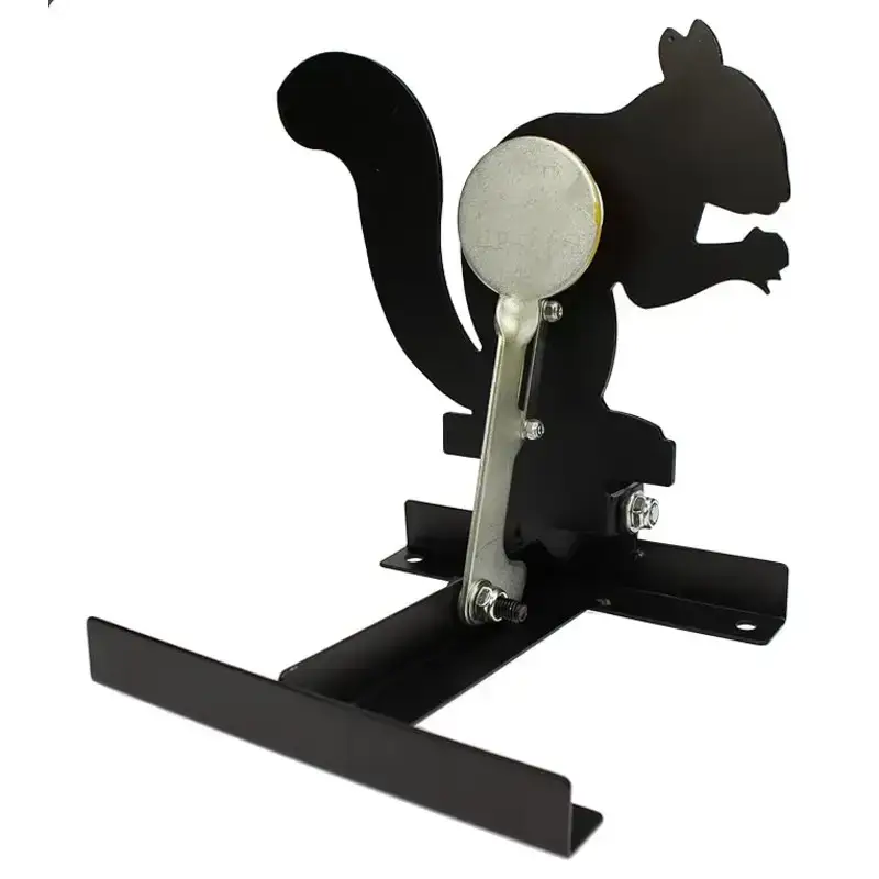 Mooi schietdoel in de vorm van een eekhoorn om op te schieten met handig trekkoord om weer opnieuw op te stellen! Handig in gebruik, je trekt het doel zo opnieuw weer op na het treffen.