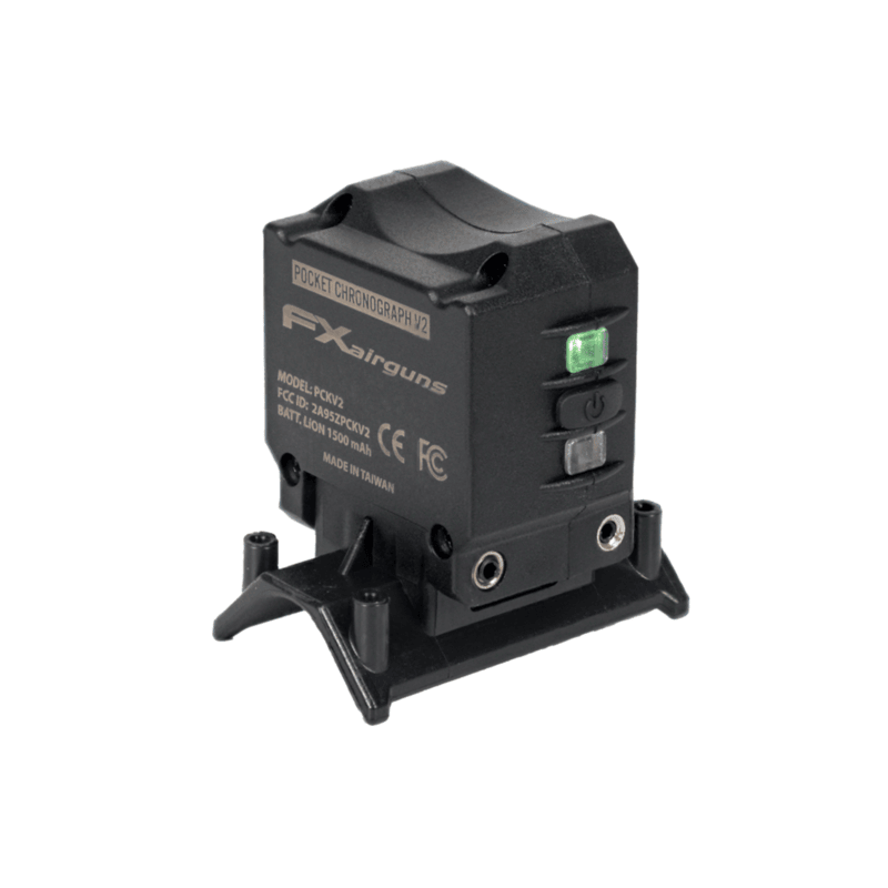 De snelheidsmeter heeft een afmeting van 50x39x60 mm en hij weegt slechts 78 gram. Er zit standaard een Weaver/Picatinny aansluiting op de snelheidsmeter, waardoor je hem gemakkelijk op een accessoirerail kunt aansluiten. Je krijgt er ook een ander soort montage bij waarmee je hem door middel van elastische banden op bijvoorbeeld het objectief van je richtkijker kunt bevestigen. Hierdoor zit hij stevig op je geweer bevestigt en krijg je altijd betrouwbare resultaten. De FX Pocket Chrono V2 snelheidsmeter heeft een Lithium-ion accu die je gemakkelijk kunt opladen met een USB-C kabel. Die USB-C aansluiting zit verborgen onder een rubberen cover.
