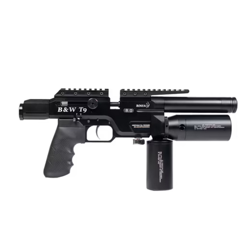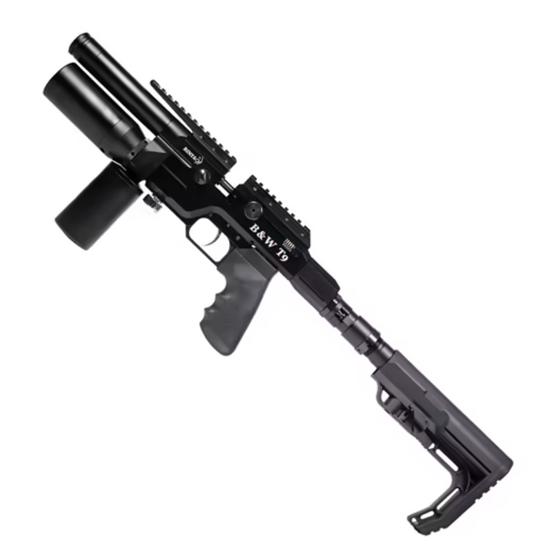 De BinTac T9 Folded Stock is een indrukwekkend semi-automatisch PCP luchtgeweer dat opvalt door zijn compacte ontwerp en extreme kracht. Dit luchtgeweer in kaliber .35 (9mm) is speciaal ontwikkeld voor recreatief precisieschieten waarbij maximaal vermogen centraal staat. Met zijn innovatieve inklapbare kolfconstructie en moderne techniek biedt dit model een unieke schietervaring voor de veeleisende schutter.