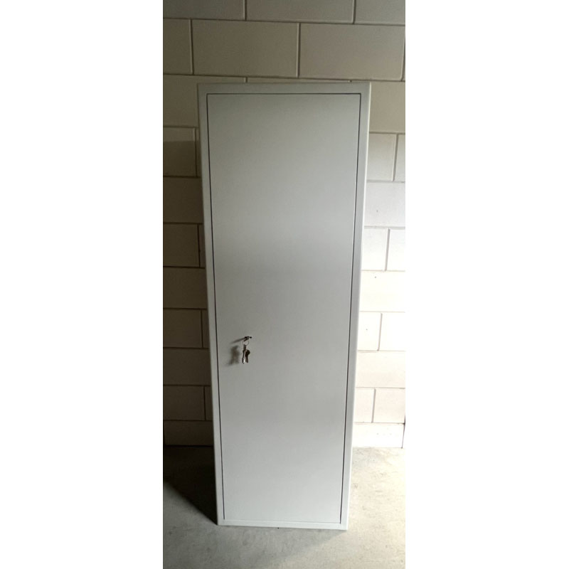 Skafor tested by the Danish Technological Institute, 4 mm sheet steel, 4 door locks of 20 mm on the outside and 4 pins of 12 mm on the hinge side. The lock is additionally protected by an 8 mm manganese steel plate. The safe has 4 holes in the back wall and 4 in the floor for fastening.