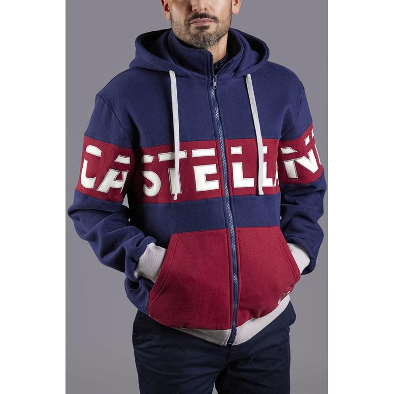 Castellani Hoodie / Vest in Blauw/rood en witte letters
