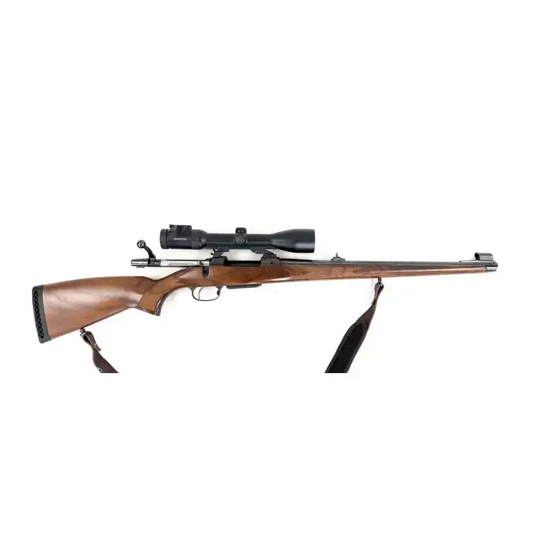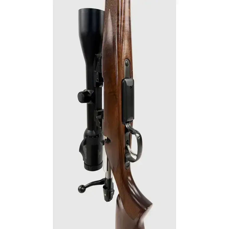 De Stutzenversie van CZ, het langere hout maakt dat het opgelegd schieten over de hele looplengte mogelijk is. En daarnaast is het natuurlijk elegant om te zien! Het wapen heeft een uitneembaar magazijn en een trekker met eventueel te gebruiken versneller. Net zo belangrijk, de optiek, een prachtige allround Swarovski 2-12×50 SR, gemonteerd op een zwenkmontage.