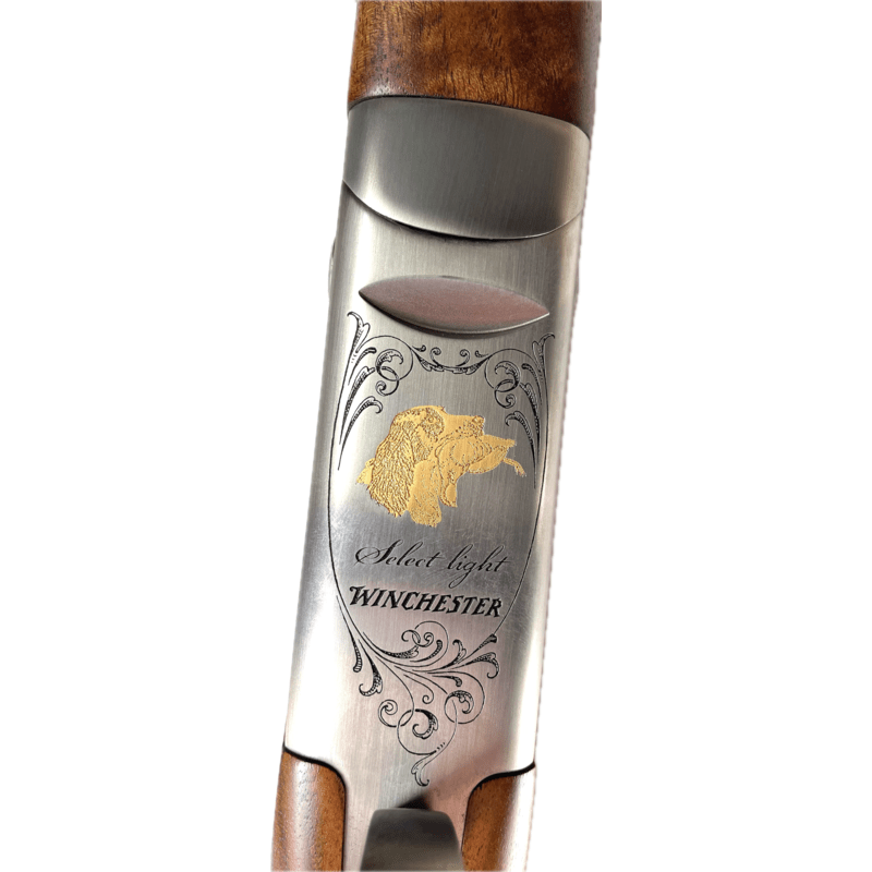 De Winchester Select Light Gold. Het bekende Winchester Select wapen van Winchester, maar dan in de lichtgewicht versie van 2.7 kilogram in de luxe uitvoering! De Luxe uitvoering bestaat uit gouden gravures en strak geolied 2.5 grade walnoten hout.